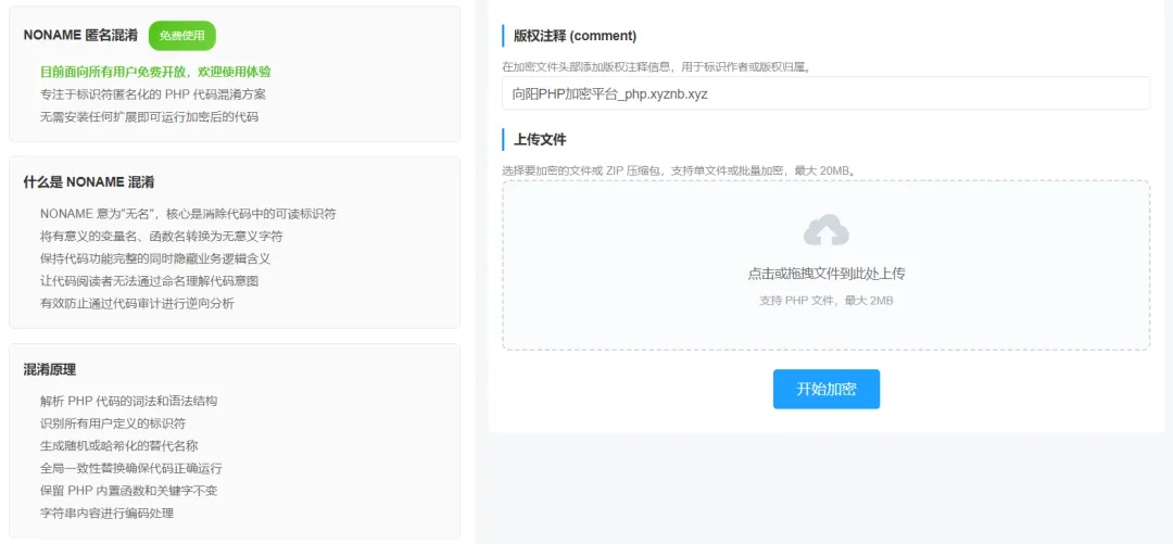 向阳加密为所有注册用户开放三大核心代码混淆工具,永久免费使用,无次数 / 无文件限制,无需付费即可完成代码基础防护,拒绝初级破解、源码扒取,基础防护一步到位,且所有混淆工具均有统一核心优势: