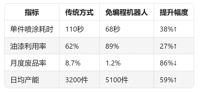 为应对这种情况,设备厂商推出免编程喷涂机器人,帮助制造业厂商实现成本和效率的双重保障。