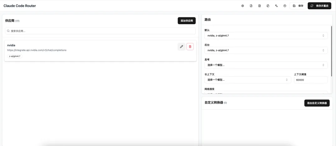 Claude Code Router 的魔力:claude-code-router 是一个强大的 CLI 工具,专门用于将 Claude Code 的请求路由到不同的模型提供商。它支持自定义请求转换,这意味着我们可以欺骗 Claude Code,让它以为自己在调用官方 API,实际上背后跑的是免费的 NVIDIA 模型