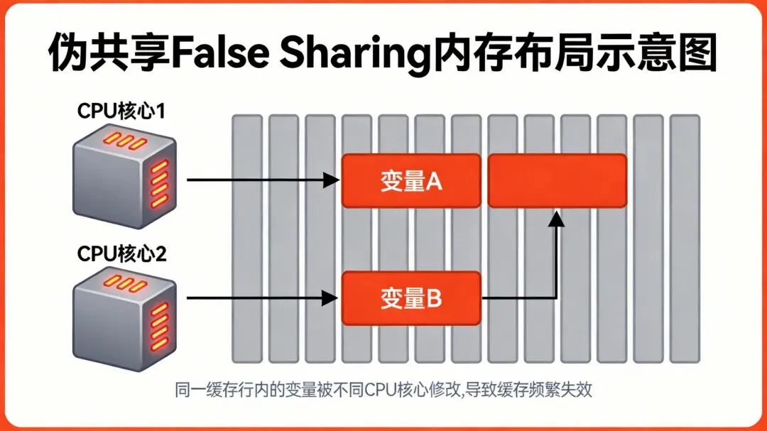 伪共享(False Sharing)是一种会导致性能下降的使用模式,最常见于现代多处理器CPU缓存中。当不同线程频繁修改同一缓存行(Cache Line)中的独立变量时,由于CPU缓存一致性协议(如MESI)会强制同步整个缓存行,导致线程间无实际数据竞争的逻辑变量被迫触发缓存行无效化,引发频繁的内存访问和性能下降。