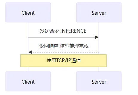 客户端发送命令,例如 "INFERENCE" 请求模型推理