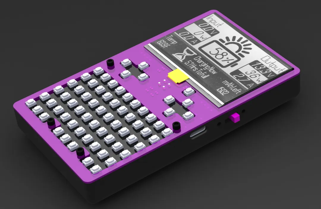 全能配置:56 键 QMK 兼容 USB 键盘 + 400x240 像素夏普记忆屏,日光下 也能清晰显示