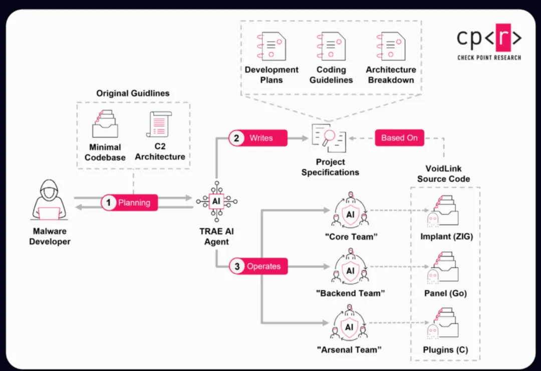研究报告指出,此前AI生成恶意软件的案例多与经验不足的攻击者相关,或功能复刻开源工具。而VoidLink是首个证明AI可被资深开发者用于打造高级恶意软件的实证。开发者的操作安全失误暴露了开发痕迹,清晰表明该恶意软件主要通过AI驱动开发,仅用不到一周就完成首个可运行的植入程序。