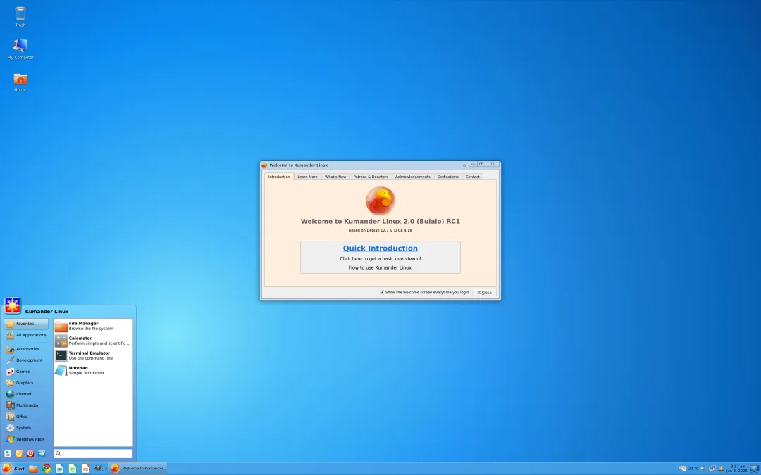 Kumander Linux 2.1 是一个专注于 复刻 Windows 7 桌面体验 的 Debian 衍生版。它通过 Xfce 桌面、丰富预装软件、Wine 兼容层,让用户在享受 Linux 自由的同时,依然能保持熟悉的操作习惯。
