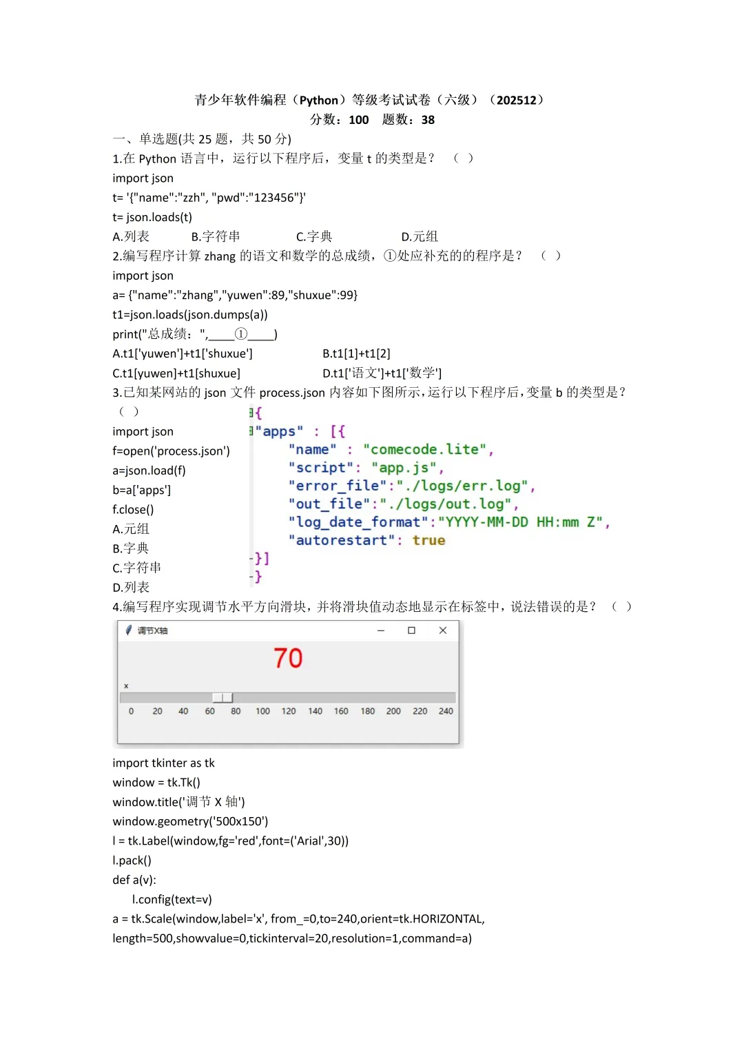 东拼西凑,终于凑齐了2025年12月Python六级的真题,其他网站要么要会员,要么就是没有图片,我也是花了一些时间为你们整理出了完整的真题,有两个版本。