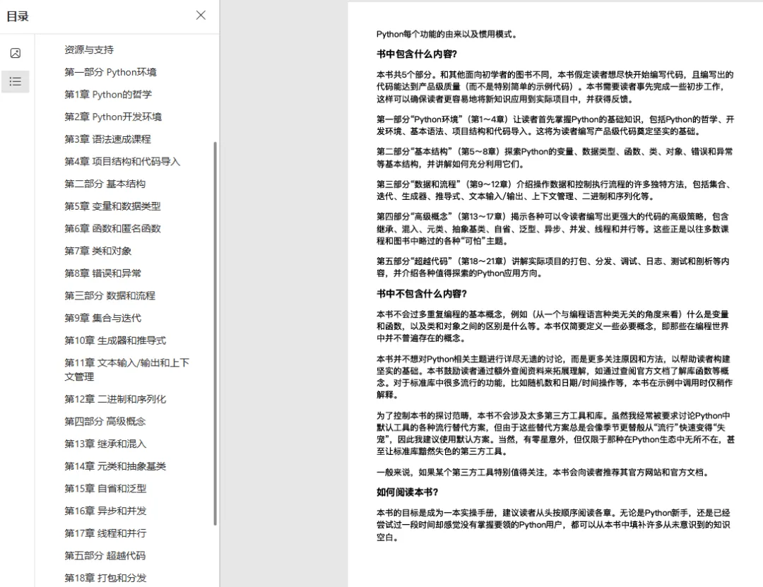 「正统性拉满」:作者是 Python 社区核心成员,全程围绕 “Pythonic” 写法展开,遵循 Python 之禅,帮你建立正确的编程思维,而非单纯记语法。