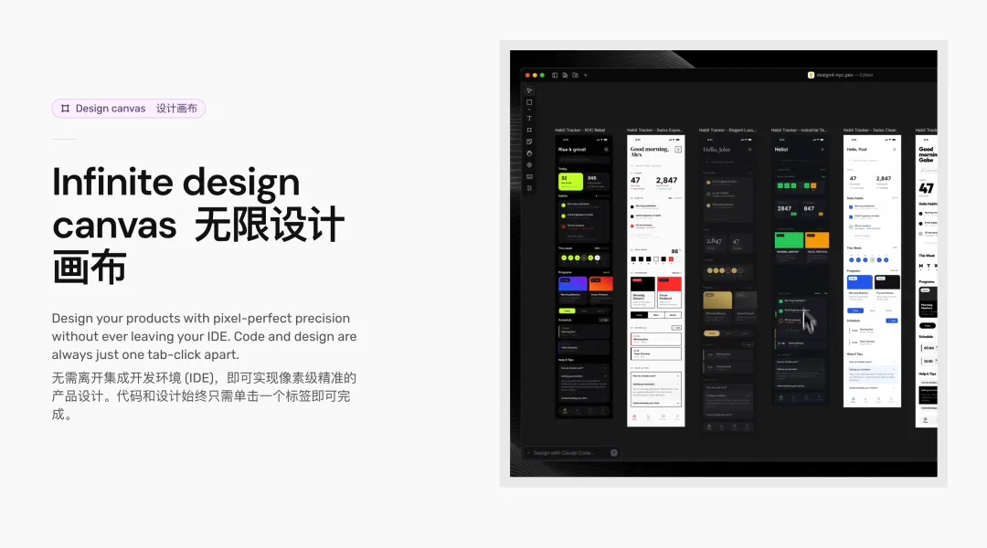 Pencil 的逻辑是:既然设计和代码最终要合在一起,为什么不从一开始就放在同一个地方?