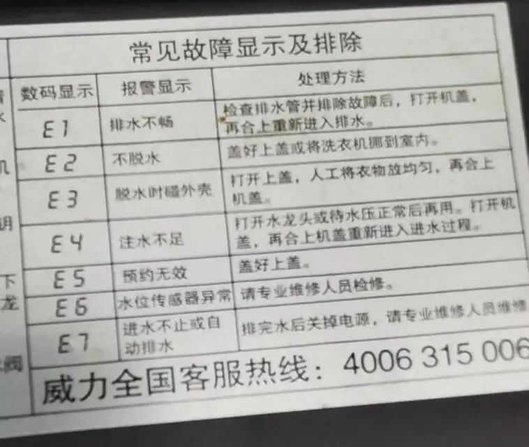 威力洗衣机故障代码