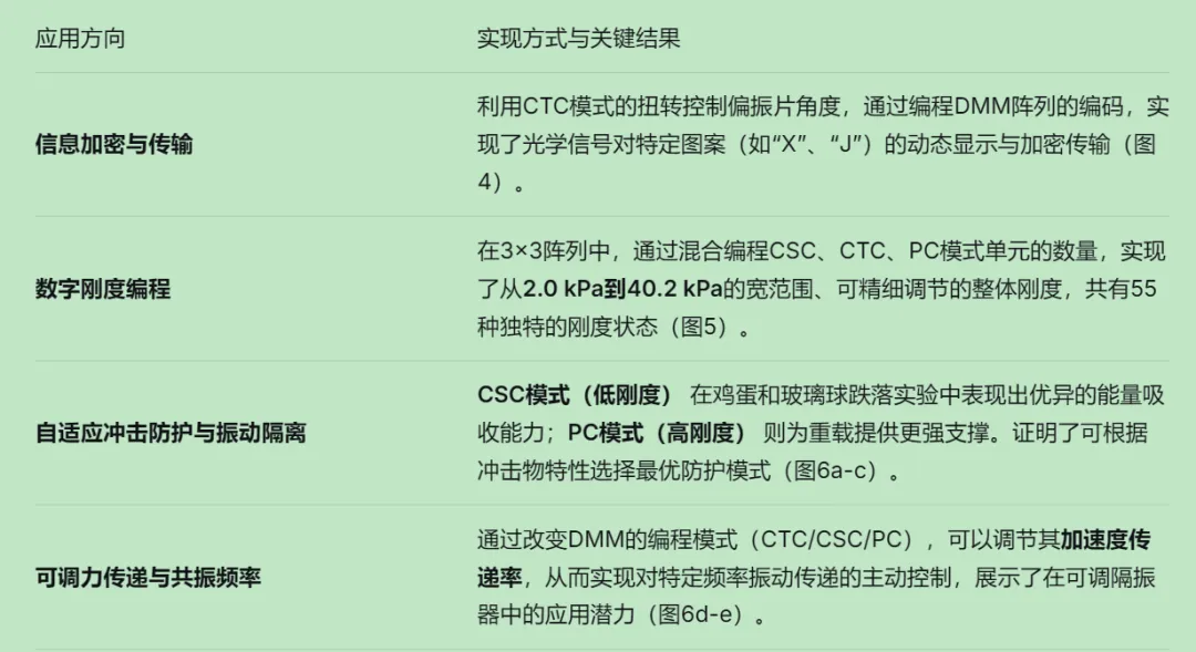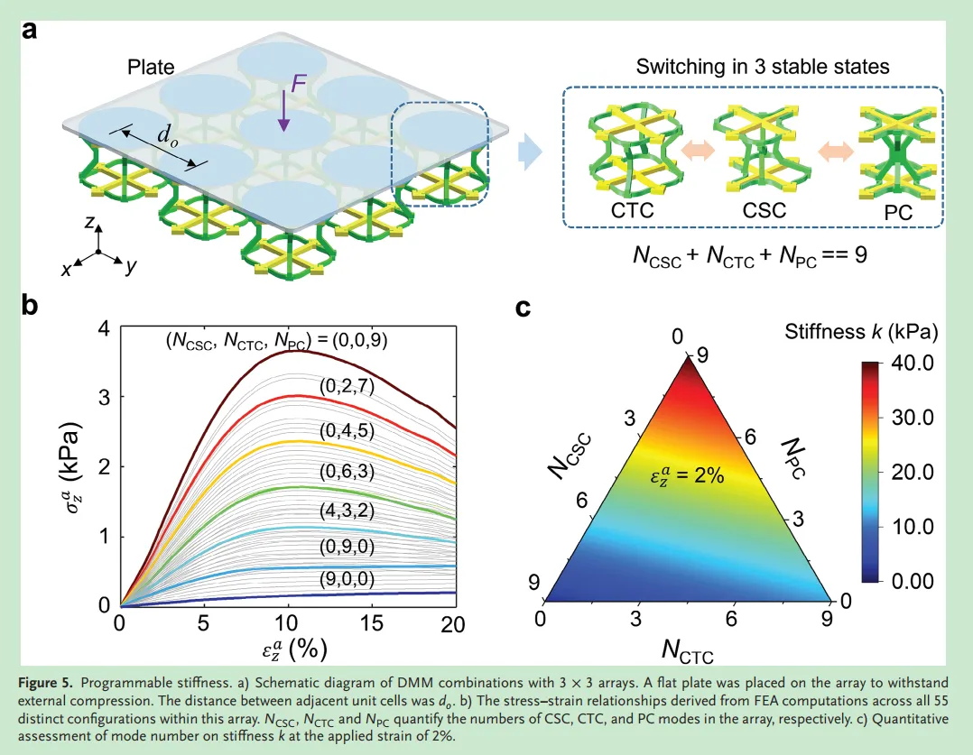 空间拓展:单元可扩展为大规模阵列,通过每个单元的独立编程,实现更复杂、更宏观的功能调控(如文中3×3阵列展示的刚度连续编程)。