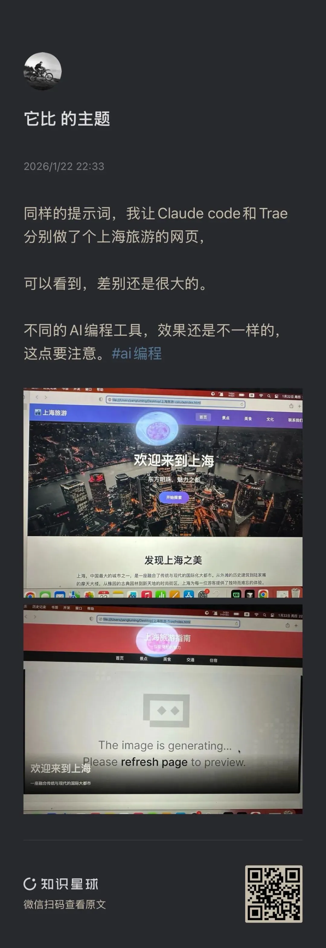 不同的AI编程工具,同样的提示词,做出来的网页效果是不一样的,这点要注意.