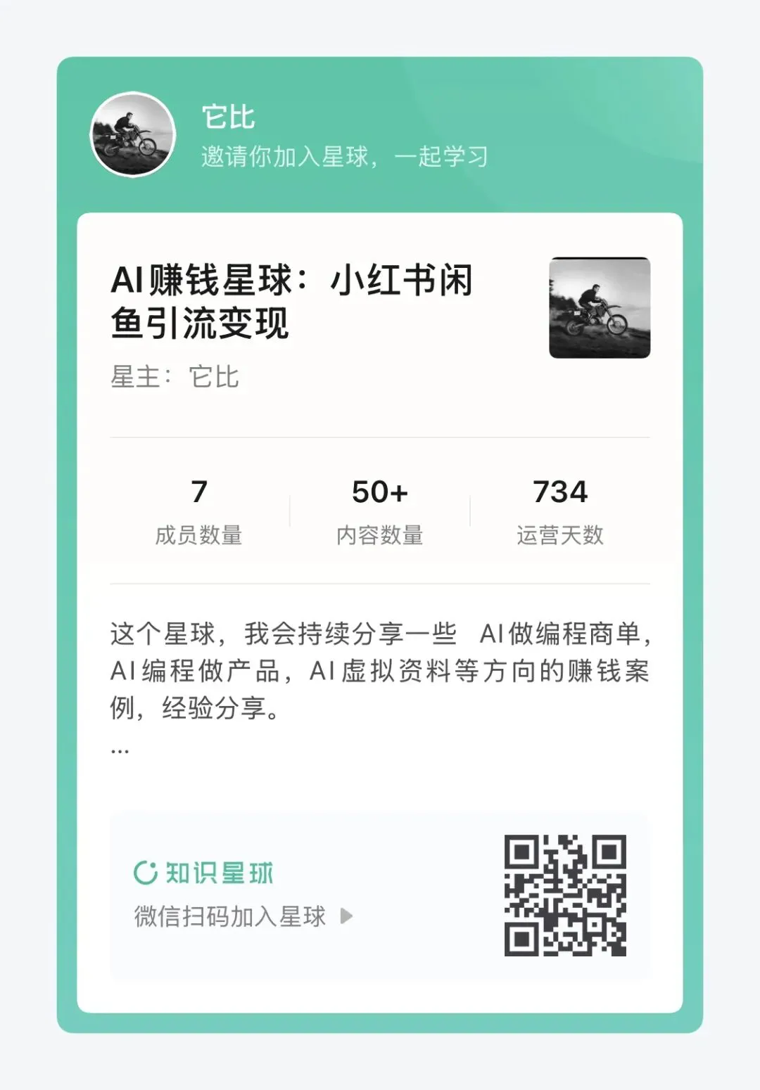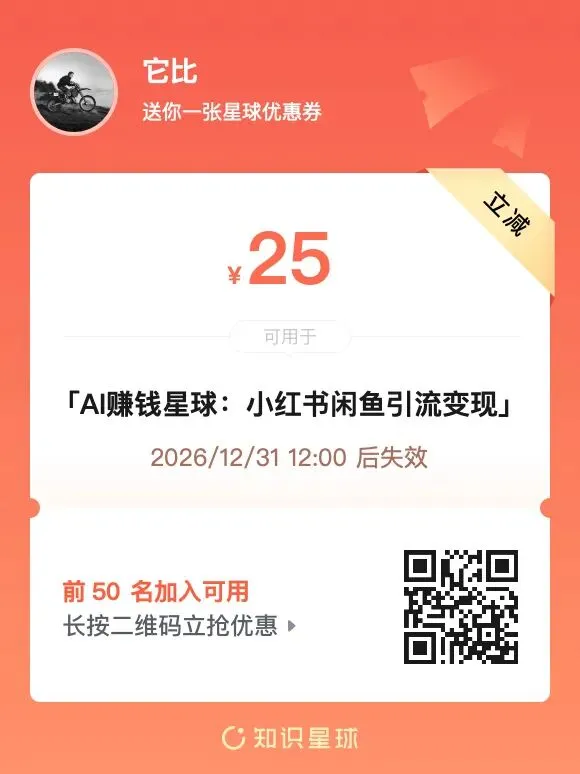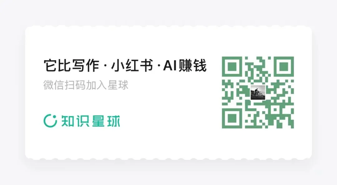上面是我的免费星球,每天都会分享我的副业思考,副业经验和小红书,闲鱼,AI,写作方面的内容,欢迎加入围观。