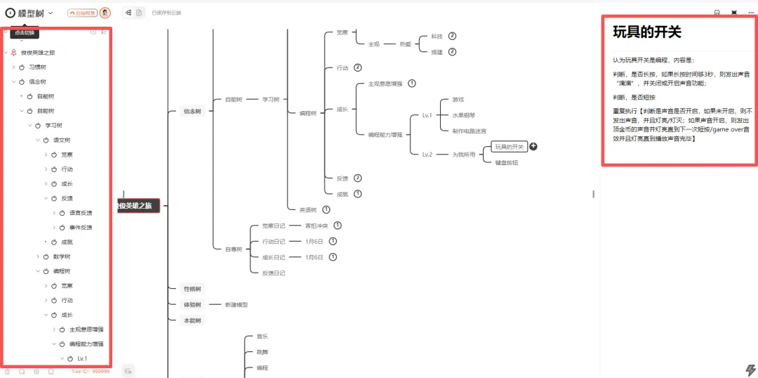 。立马打开日记树记录成长,不到半个小时作业搞定,就开始玩儿新玩具。我能说那只是我为了凑单,买了个在购物车躺了很久却一直觉得没用的破烂玩具吗,谁承想,他突然给我说:妈妈,这个按钮是个编程。!!!我立马打开编程树叫他过来,我说你的树又要长大了。快来。