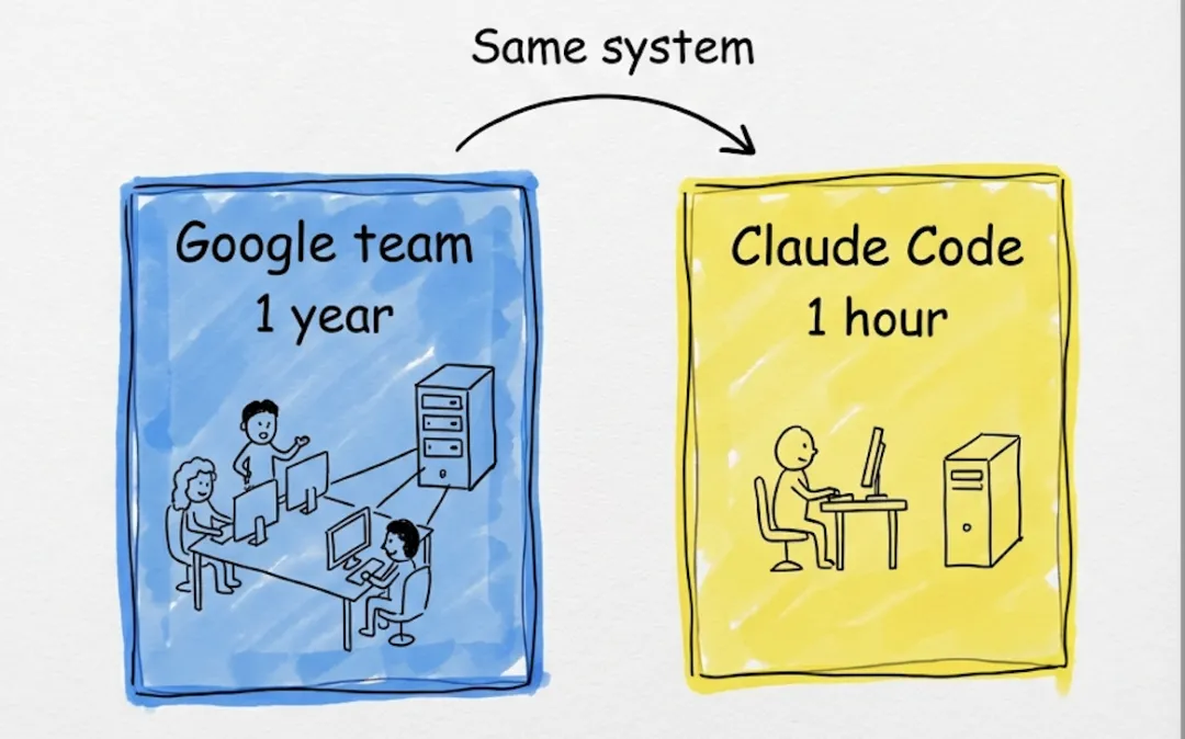 "我不是在开玩笑。我们在 Google 花了一年时间做分布式 Agent 编排系统。我把需求描述给 Claude Code,它一个小时就生成了我们去年做的东西。"