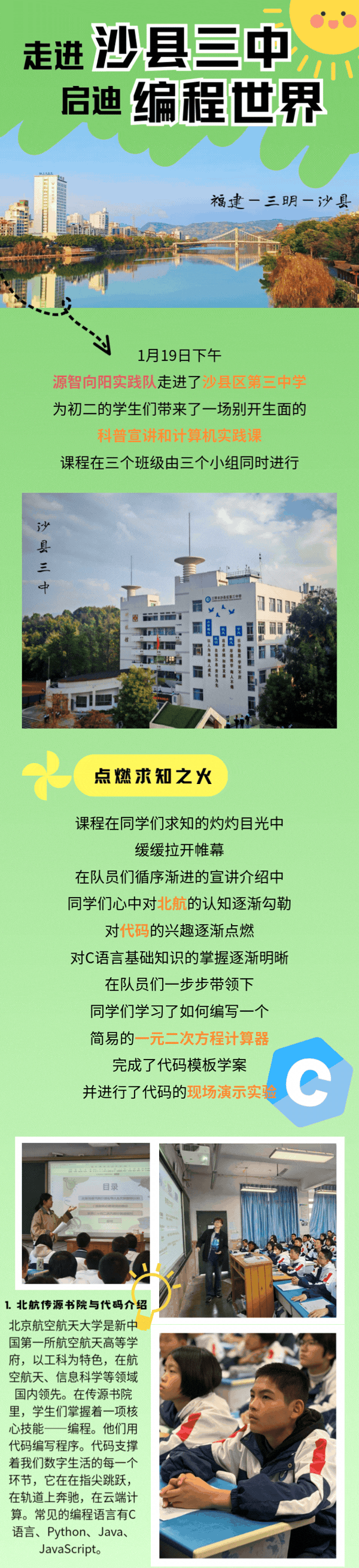 科普宣讲 | 走进沙县三中 启迪编程世界