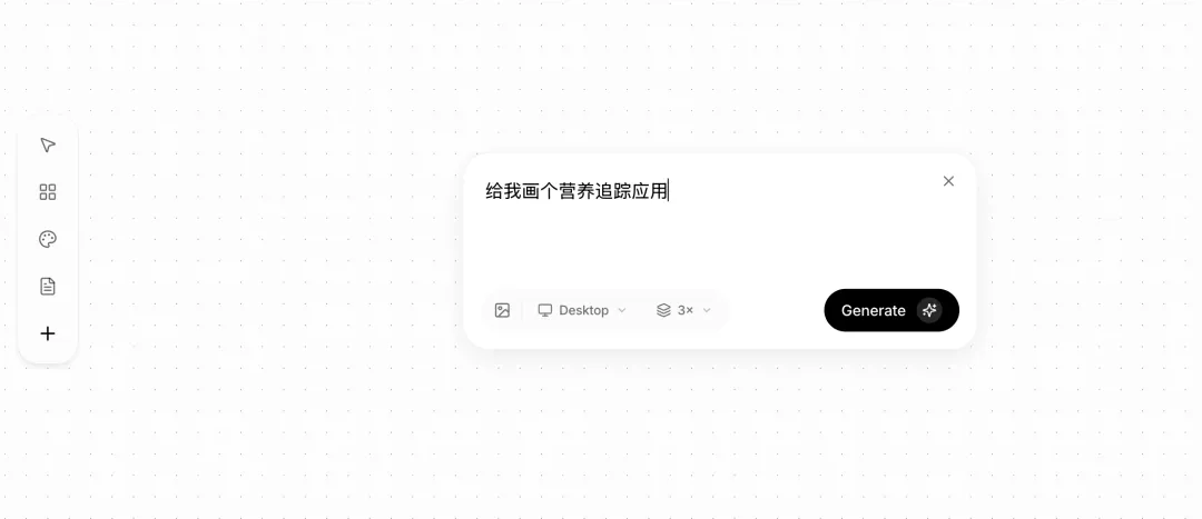 - 左侧的工具栏有个 + 号,在那也可以手动创建设计,这也比较方便,直接输入需求就生成了: