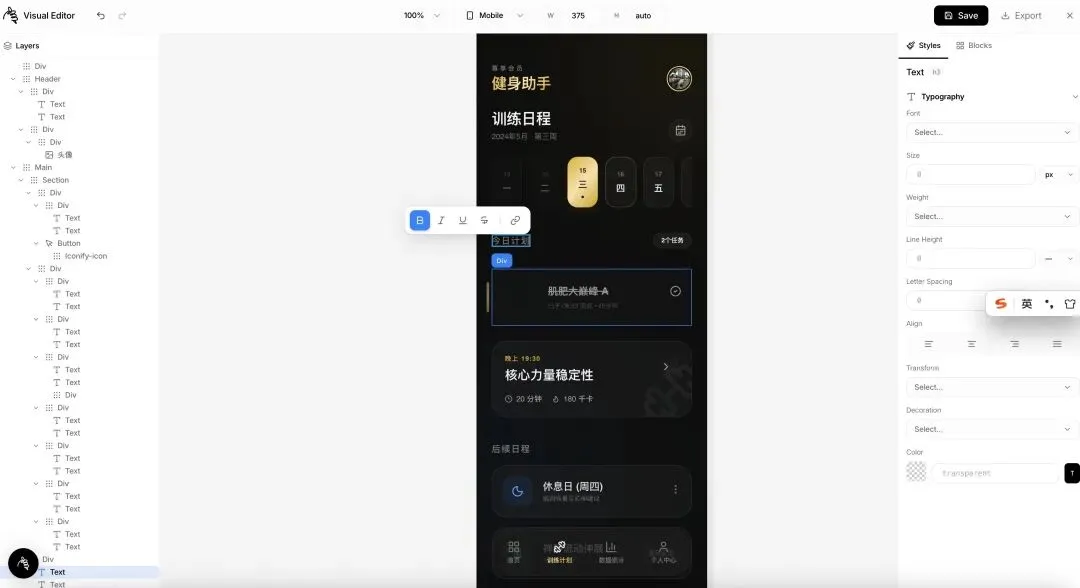 - 右侧的元素编辑区完全能跟 Figma 去打了,微调 UI 的时候体验很专业