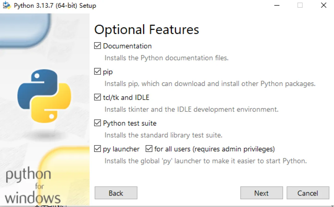 我们选择 D 盘的文件夹,比如:D:\Python\Python313,其他选项我们保持不动,然后点击 Install 。
