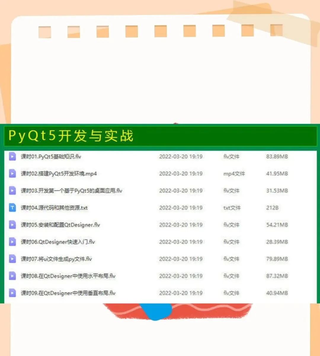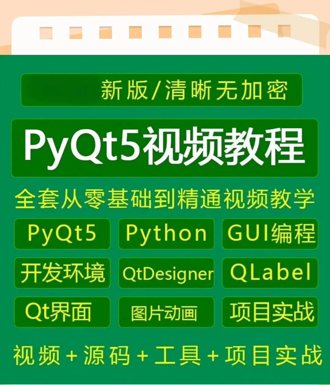 这是一套面向Python开发者的PyQt5零基础到精通视频教程,主要用于学习使用PyQt5库开发图形用户界面(GUI)应用。以下是对它的详细解析: