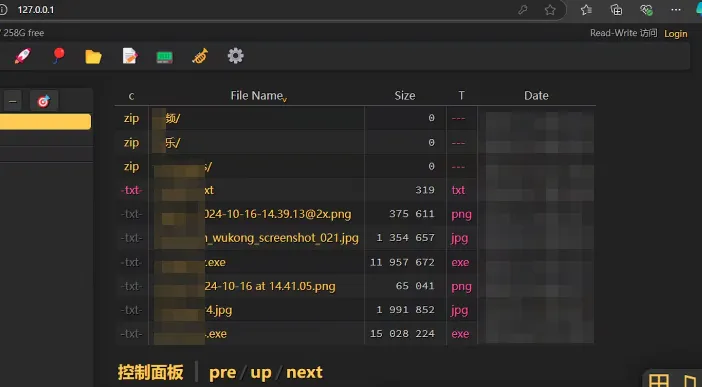 3、访问管理: 浏览器打开上述地址即可查看和操作文件。支持拖拽上传、在线预览及分类浏览。