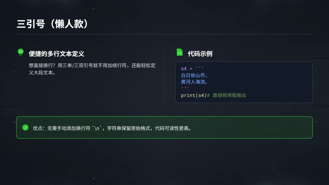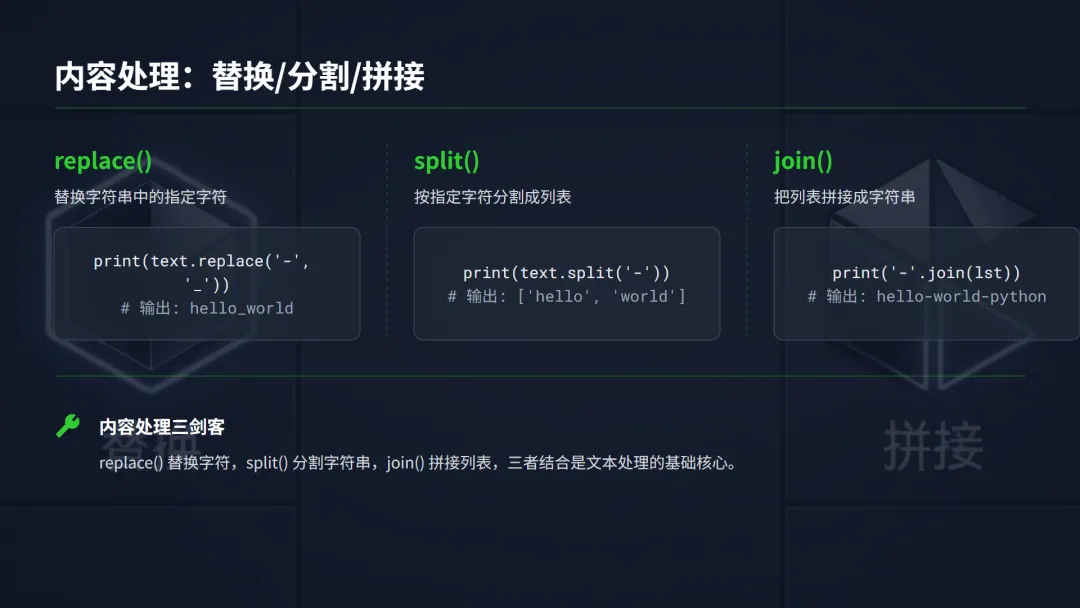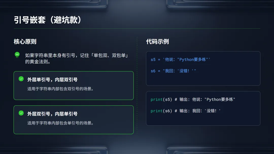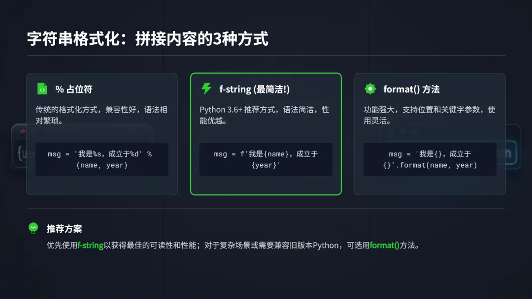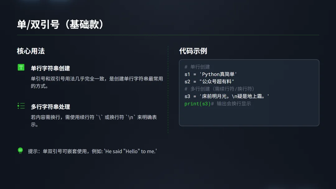 初学 Python 时,字符串绝对是绕不开的核心数据类型 —— 不管是处理文本、拼接内容,还是解析数据,都得靠它。今天就把字符串的核心知识点一次性讲透,从创建到实战,新手也能轻松拿捏!