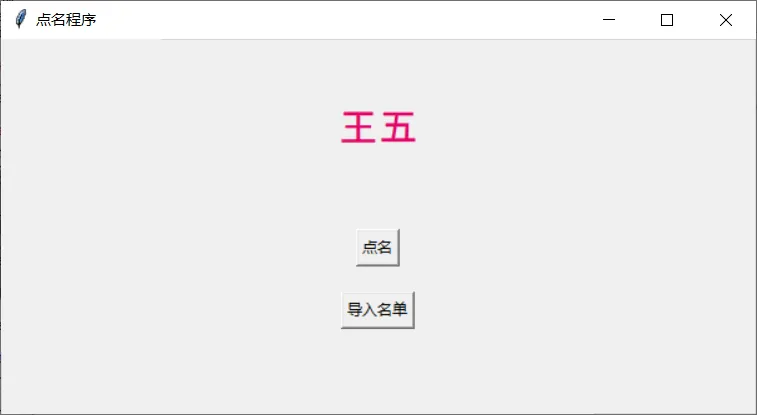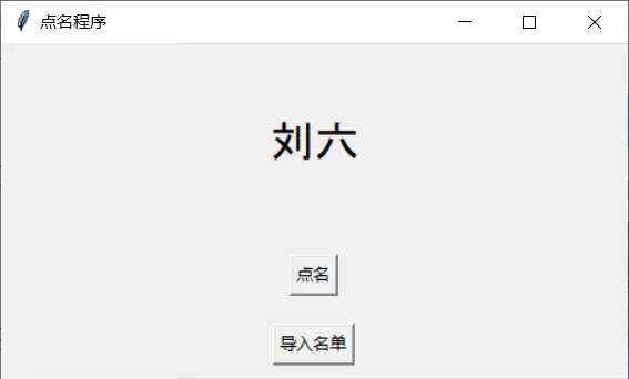 可以使用Python的图形用户界面(GUI)库之一来创建一个带界面的点名程序。下面是使用tkinter库编写的简单示例程序: