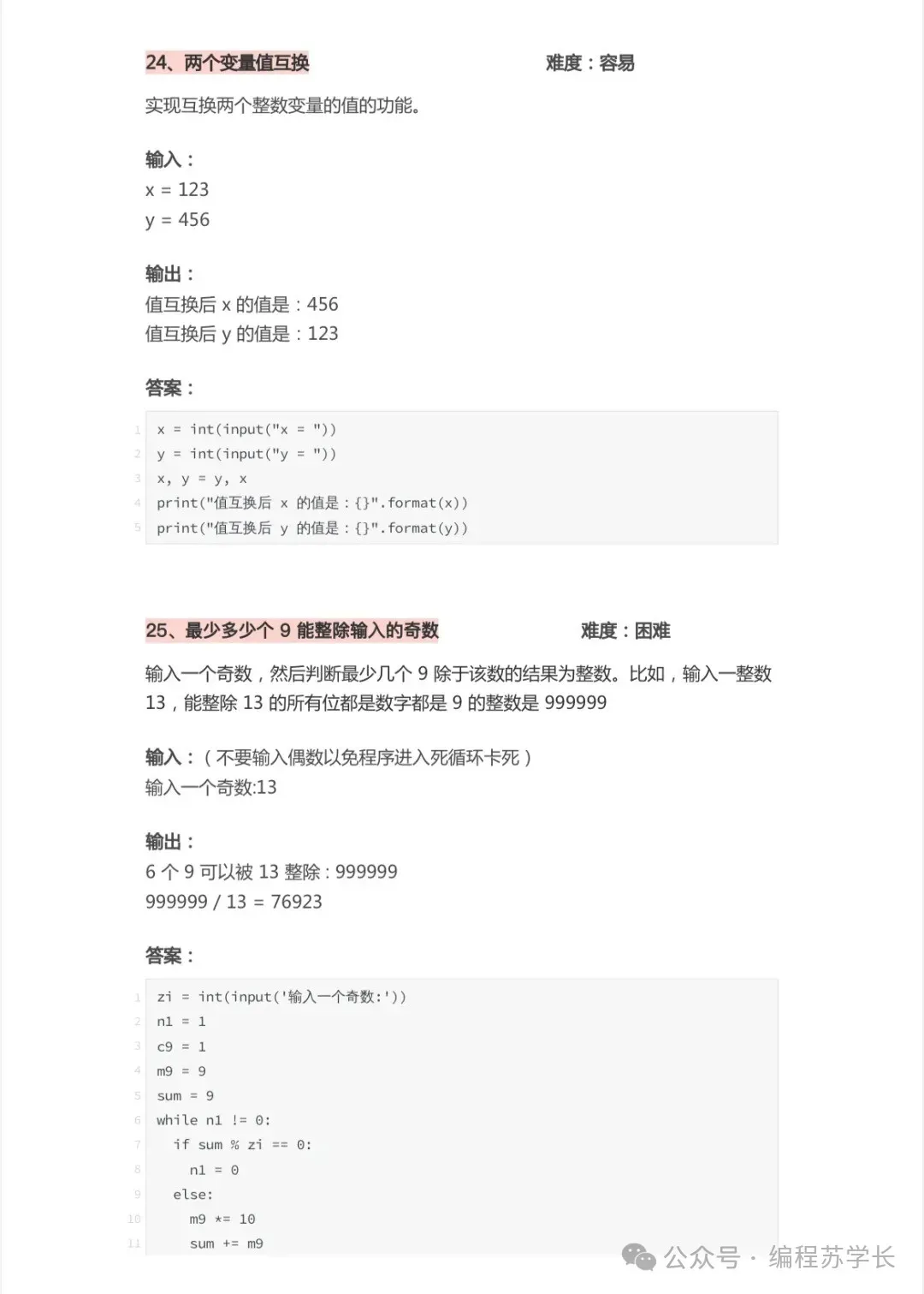 初学Python的时候,千万别背书记语法,自己上手敲一道代码题就都会了!拿好这100道经典练习代码,刷完就是Python大佬!