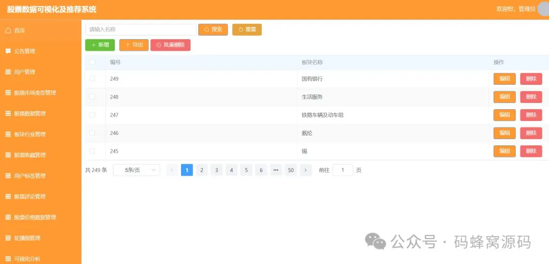 股票数据可视化及推荐系统的重要核心功能股票数据爬取、股票浏览、股票收藏、股票个性化推荐、股票评论、股票可视化分析等。具体功能模块如下: