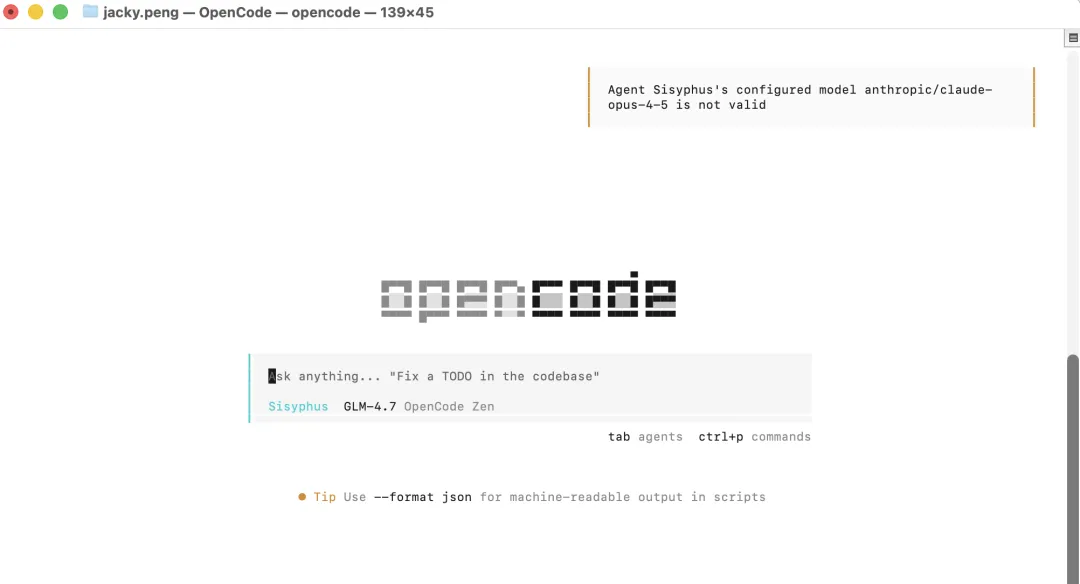 敲下回车,它就会自动开始安装。搞定后,以后每次只要在终端输入 opencode,就能直接召唤这个AI助手。