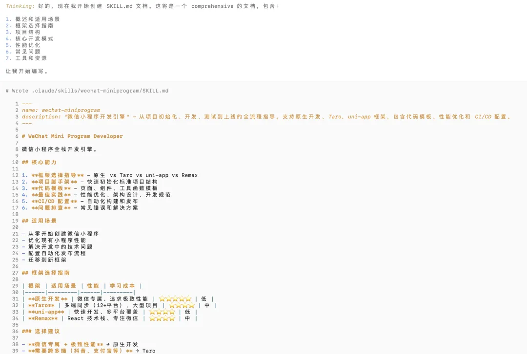“我准备制作一个微信小程序,你是否可以制作一个专门制作微信小程序的 Skill?”