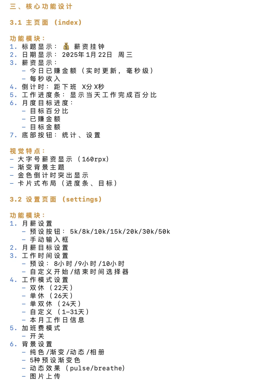 - 2头脑风暴:AI一口气给了我5个点子。为了快速验证,我选了第2个——“薪水挂钟”(很有打工人共鸣的小工具)。