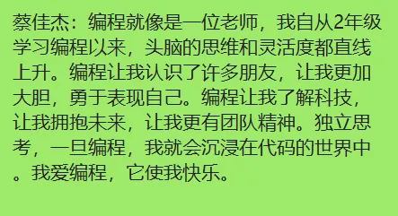 《建议》原文中提到:“相关课程受到一线教育工作者的认可,后作为杭州上城区、西湖区、江干区的推荐校本教材,取得了良好的教学效果,并建立起一套‘高校+校外培训机构+中小学校’的合作模式,探索出适应本地化教学的权威教材,对编程教育在校内的普及和规范化教学具有借鉴意义。”