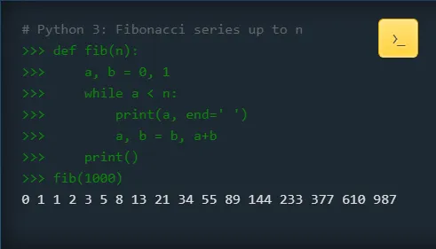 Bash$ python>>> print("Hello interactive world!")Hello interactive world!>>> 1 + 12>>> exit() # 退出交互式环境