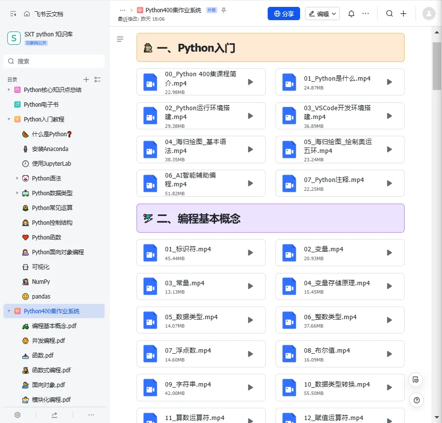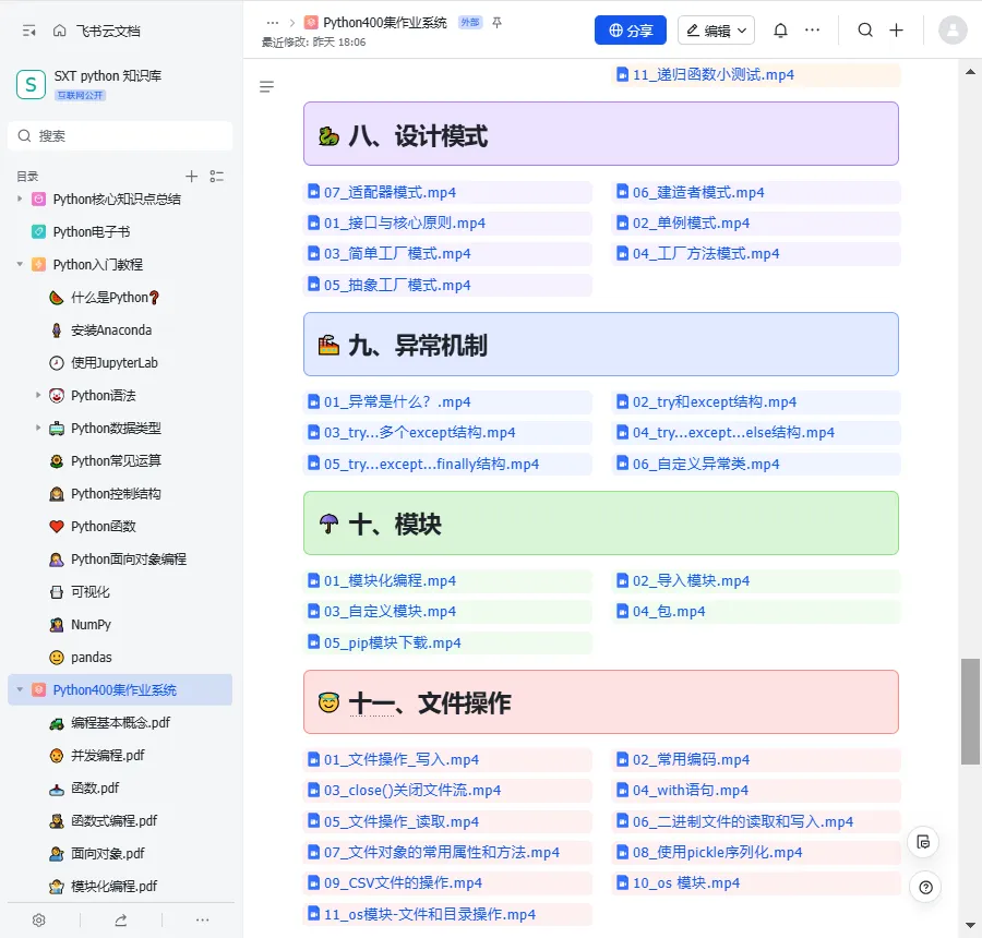 最后分享一个自己整理的Python知识库,里面涵盖了Python学习的全流程从Python安装,学习路线,入门教材,视频教程,作业系统最后到实战项目,经典练习题,大厂面试题,简历模版等等都包含了,希望可以帮助到想要自学Python但不知道如何开始的朋友!