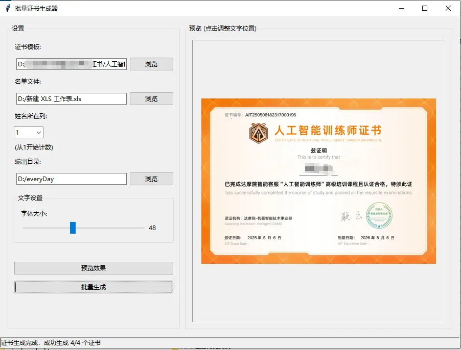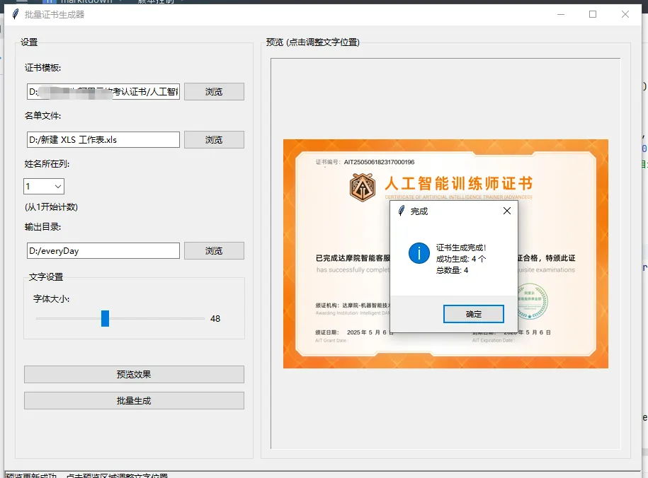 “还在为年会 500 张证书手写名字而抓狂?还在把 Word 当 PS 使?别闹了!今天咱们把 Python 开成外挂:拖一张模板、点两下鼠标、喝杯咖啡的功夫,证书哗啦啦全出炉!接下来请系好安全带,老司机带你拆解这辆‘全自动印钞机’——哦不,证书生成器的每一颗螺丝钉!”