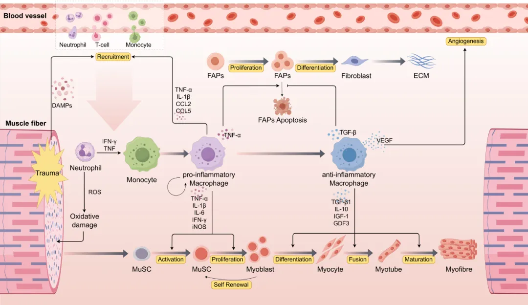 在全球人口老龄化的背景下,肌少症已成为严重影响老年人生活质量、躯体功能与长期健康的关键临床问题。其病理机制复杂,其中骨骼肌再生异常是关键环节,而该过程受局部免疫微环境调控,尤其与巨噬细胞功能状态的改变密切相关。