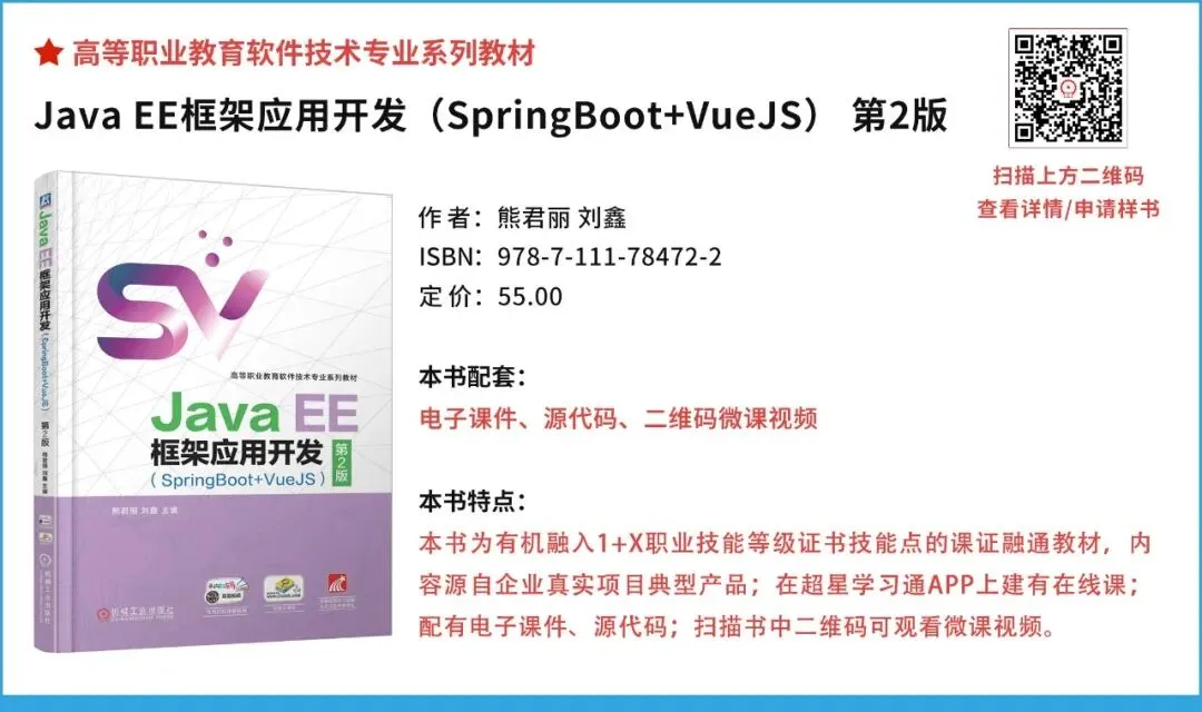 书名:Java EE框架应用开发(SpringBoot+VueJS) 第2版