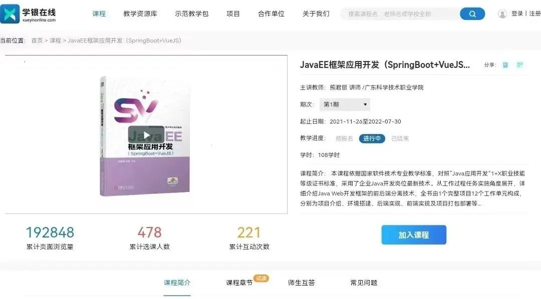 JavaEE框架应用开发(SpringBoot+VueJS)课程👇