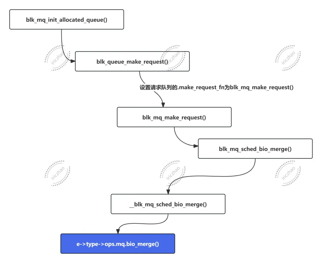 ->bio_merge()将bio合并到现有请求,函数调用链如下: