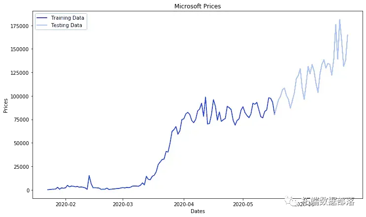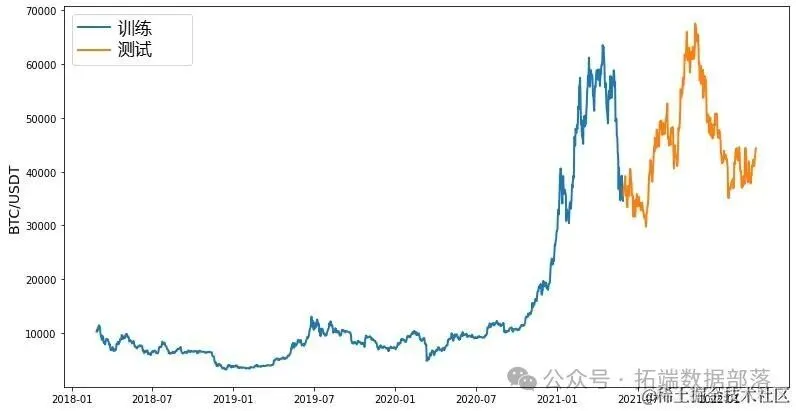 上面的图片链接显示了训练集和测试集价格随时间变化的折线图。