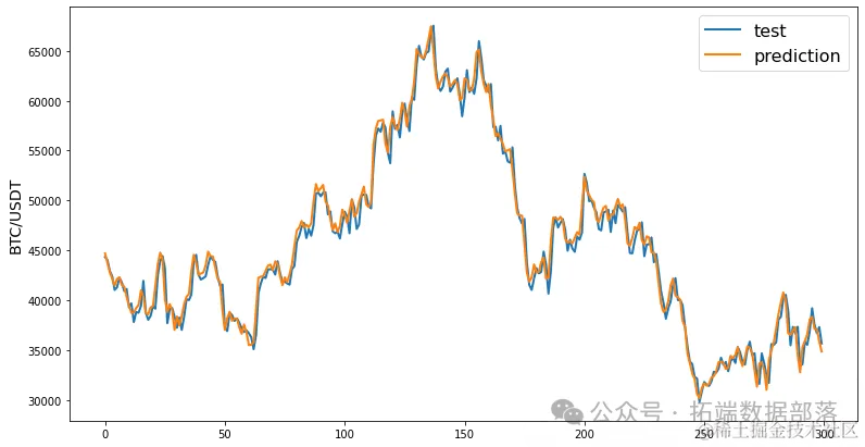 python复制代码 line_plot(y_testt, preds, 'test', 'prediction', title='')这行代码调用了一个名为line_plot的函数(该函数在提供的代码段中未定义,但根据命名和参数可以推测其功能),用于绘制测试集的真实值y_testt与模型预测值preds的折线图。图表的标题为空,x轴标签为'test'(可能表示测试集样本),y轴标签为'prediction'(表示预测值)。通过这条命令,我们可以直观地比较真实值与预测值之间的差异,进一步评估模型的性能。