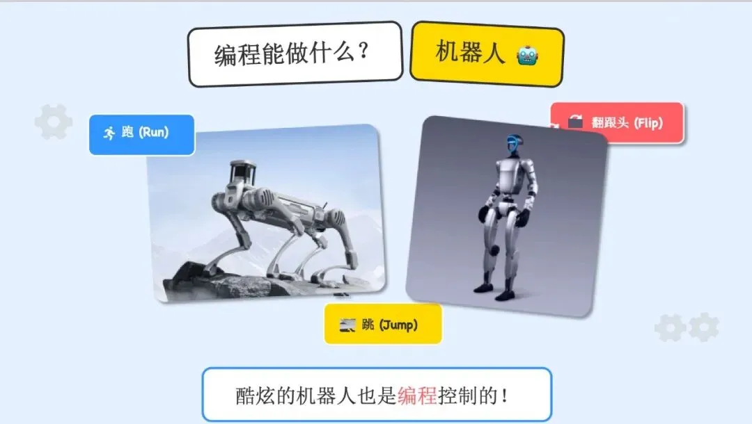 课程从孩子们最熟悉的事物开始。“你们爱玩的游戏、喜欢看的动画、运动会上看到的炫酷的机器人,都是依靠编程创造出来的!”珺琦爸爸的话拉近了“编程”这个看似高深的词与孩子们的距离。孩子们明白了编程不仅可以创造丰富多彩的虚拟世界,还能控制真实世界的智能机器。