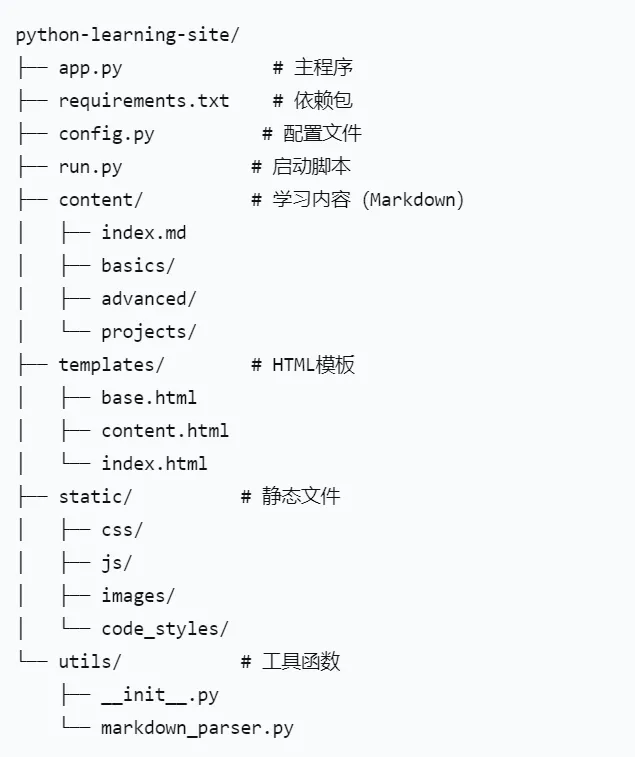 今天我们学习了如何用python的flask+markdown建立用于自己学习网站,随着我们学习的深入,把碎片化的知识进行归纳总结是个好习惯。特别是对于python学习来说,尽管语法简单,但涉及的模块众多,我们要根据自己的学习方向进行调整。