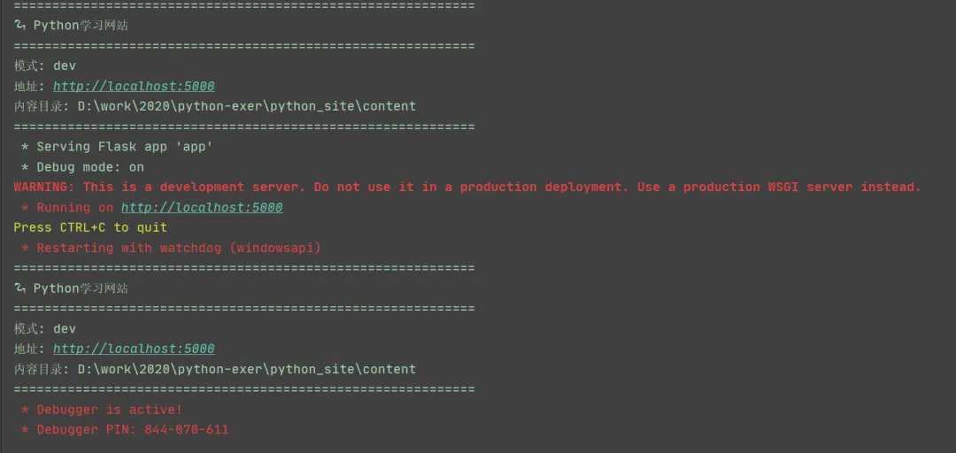 这说明flask框架下的python程序启动了,接下来我们访问网站: