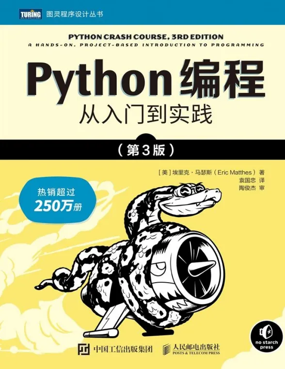 《Python 编程:从入门到实践(第 3 版)》:全球都畅销的入门书,项目驱动教学,零基础也能看懂,我当初入门就是靠它。