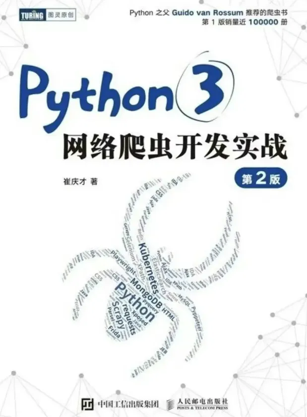 《Python3 网络爬虫开发实战(第 2 版)》:Python 之父都推荐,销量快 10 万册了,从基础到高级爬虫技术都覆盖了,实战性拉满。