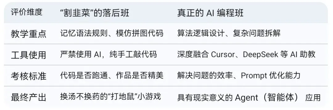 既然语法不重要了,那 2026 年的孩子应该学什么?真正的 AI 编程教育,底层逻辑已经进化为以下三个维度: