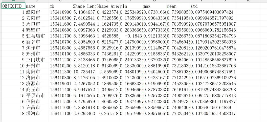 分区统计 (Zonal Statistics):一键统计每个区县的 Mean/Max/Min 值,并导出为 Excel/CSV 表格。