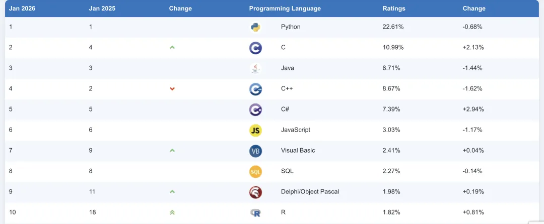 需特别明确:TIOBE指数不代表“最佳编程语言”,也不反映“某语言编写的代码行数最多”——它衡量的是“语言在开发者群体中的关注度与使用热度”。