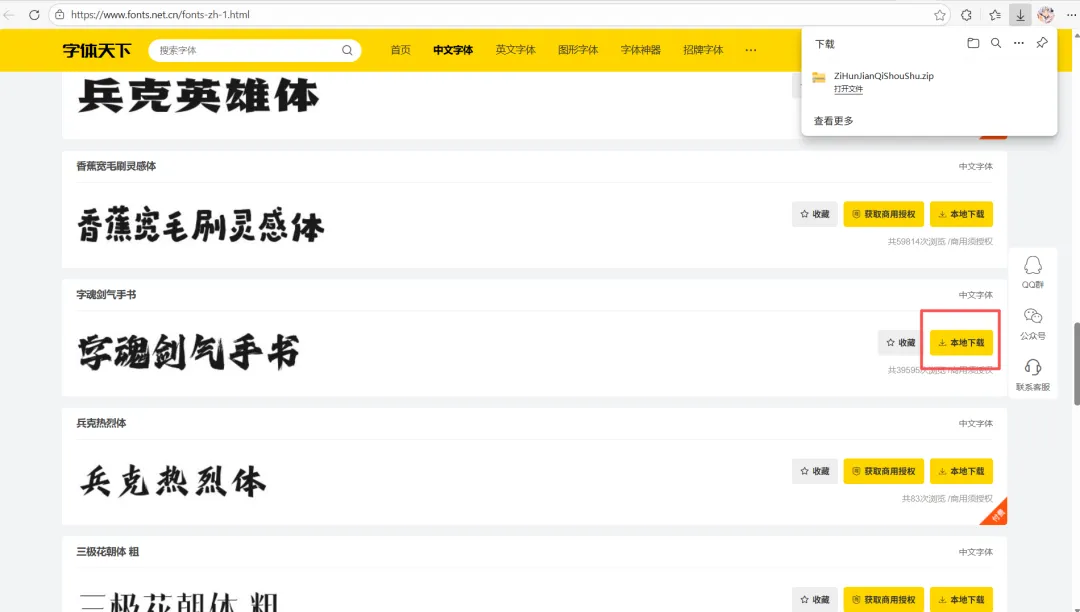 先选择想要使用的字体下载: