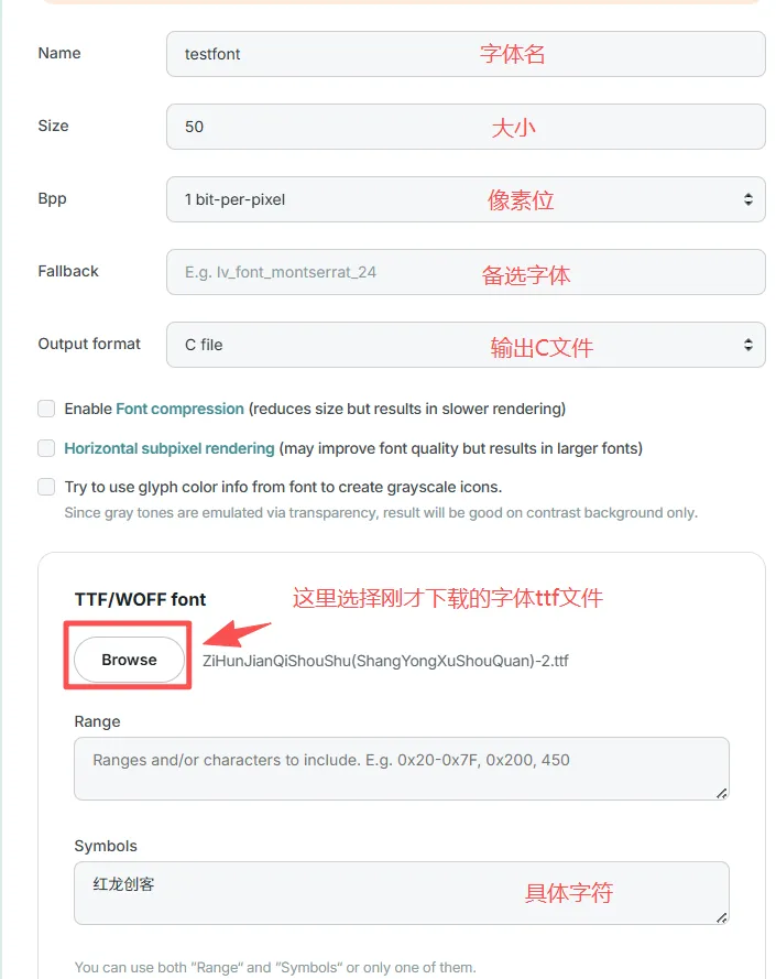 然后访问LVGL官方字体转换工具:https://lvgl.io/tools/fontconverter